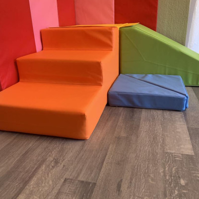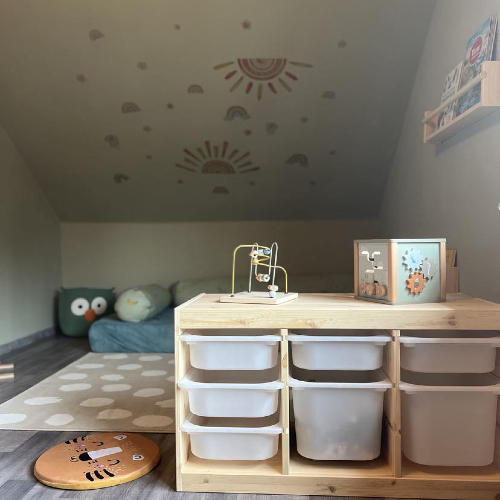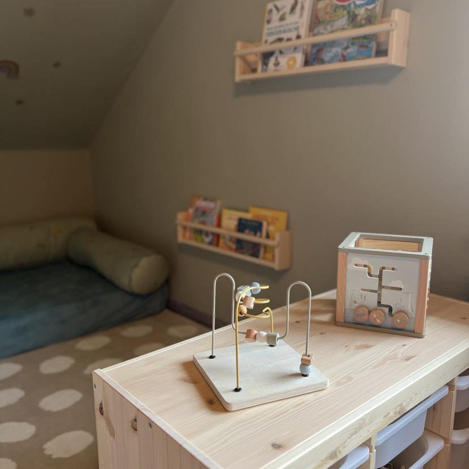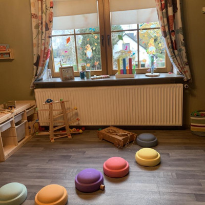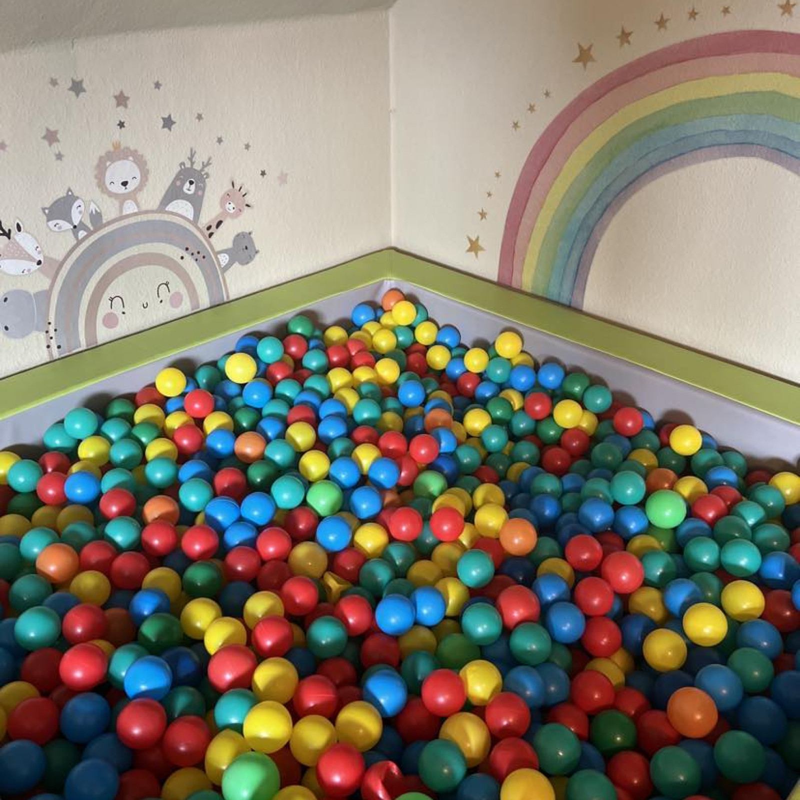 Das Spielzimmer ist hell und freundlich. Es lädt zum spielen, toben, klettern und kreativ sein ein.